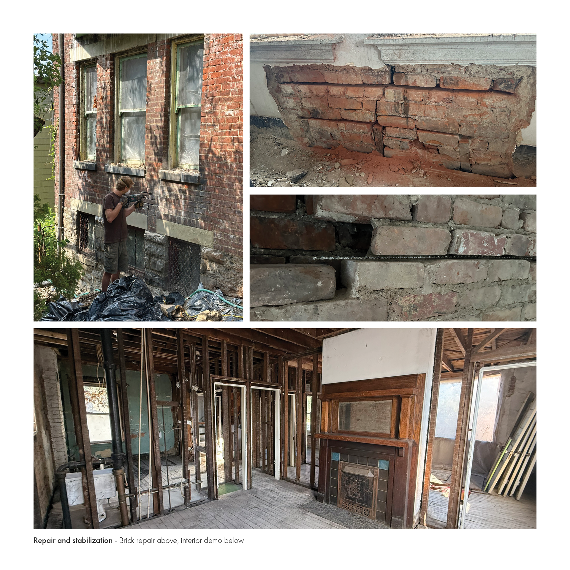 The project site sits within a historically protected neighborhood. As such, it was required to receive approval from the Cincinnati Historic Review board as well as the planning commission before proceeding. The project one a Certificate of Appropriateness from the former in late 2024 and approval from the latter in 2025. As of the time writing this, one building has been fully demolished while the other two have gone through extensive stabilization. This includes masonry repair, interior demolition, and roof repair.